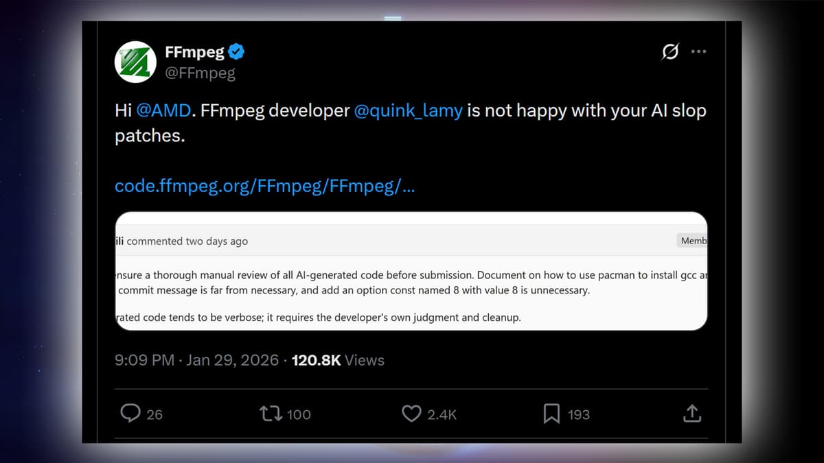 Another FFmpeg team member amplified the criticism on X (formerly Twitter), bluntly calling the patch “your AI slop.” FFmpeg maintainers then rejected the commit on technical grounds; several reviewers pointed out that support for AMD GPUs already exists via Vulkan, reducing the need for a separate HIP path on Windows.