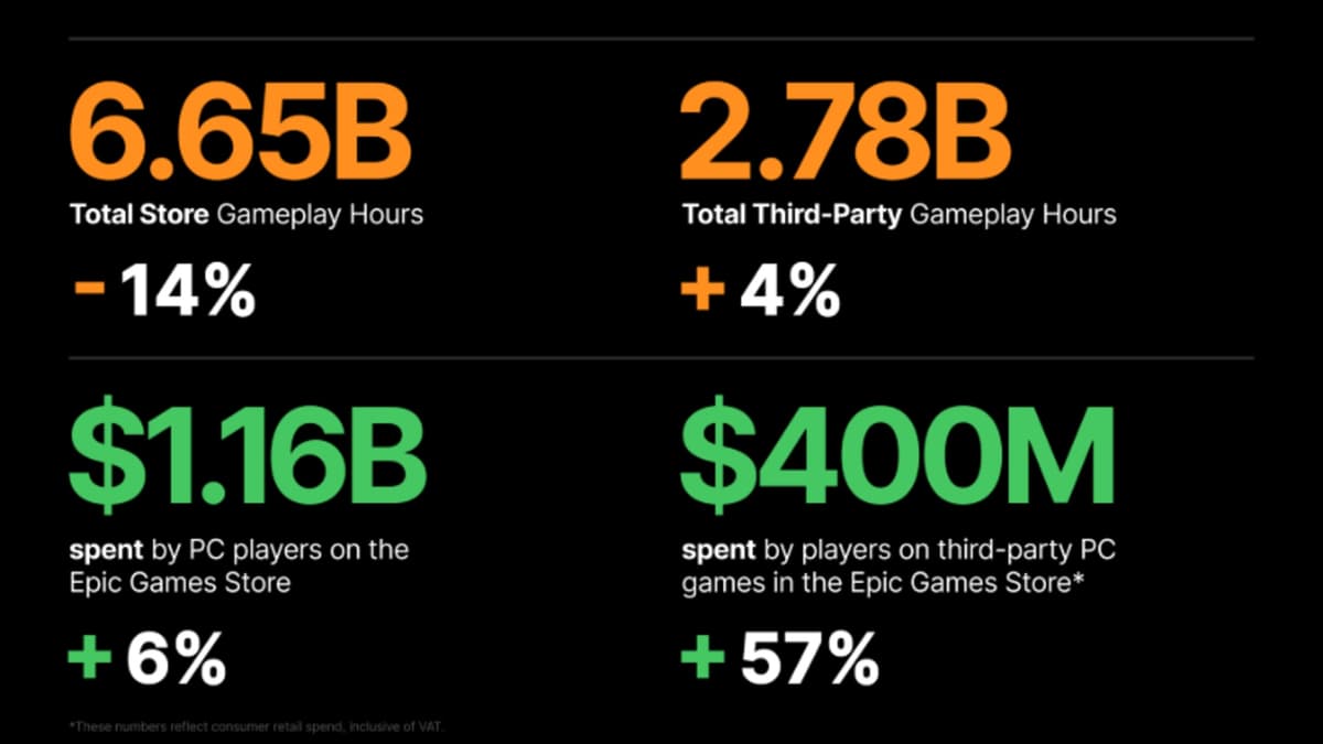 Epic’s topline metrics are meaningful. Player spending on third‑party PC games jumped 57% to a record $400 million, and players logged 2.78 billion hours in third‑party titles. Monthly active users hit 78 million, and across the whole store players spent 6.65 billion hours in 2025. That growth in third‑party time (+4%) is the clearest sign Epic’s storefront is increasingly relevant for devs.